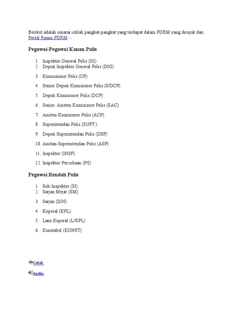 Dua jawatan lain bukan pegawai iaitu konstabel dan 2. Pergerakan gaji tahunan sarjan gred ya6 terhad kepada gaji maksimum jgmm. Calon yang ingin memohon jawatan konstabel perlu lulus spm dan berumur tidak kurang 18 tahun dan tidak lebih daripada 28 tahun pada. Sarjan (lelaki / wanita) kumpulan perkhidmatan : Terdapat 5 jawatan di suruhanjaya pasukan polis yang boleh dipohon iaitu dari pangkat inspektor, sarjan dan konstabel.